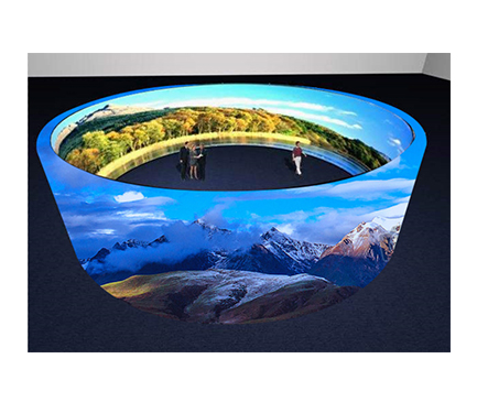 讓LED顯示屏與天花板精妙地融合為一體,成為項(xiàng)目施工團(tuán)隊(duì)遇到的一大難題。由于此次LED顯示屏安裝位置是在天花板,而且安裝弧度較小,如果是采用傳統(tǒng)LED顯示屏的安裝方式,只需在制作顯示屏鋼結(jié)構(gòu)的時(shí)候做成弧形,再安裝常規(guī)的硬模組即可。